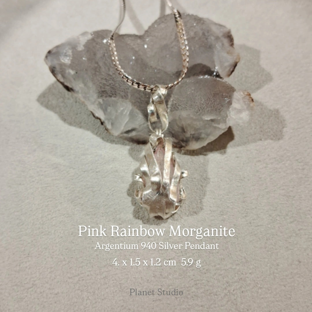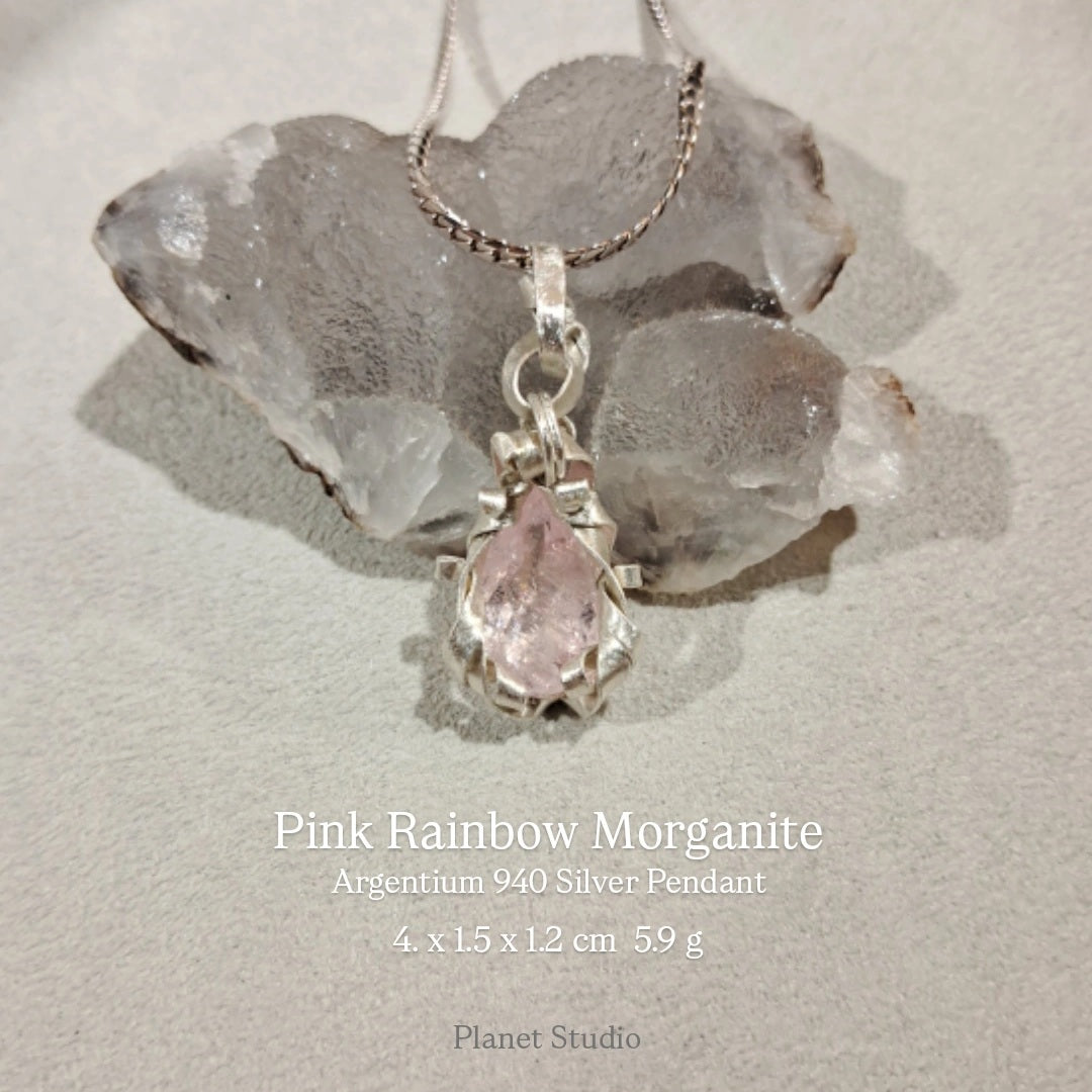 Rainbow Morganite Brazil 粉紅摩根石 彩虹光花園 純銀墜飾 Necklace-H257
